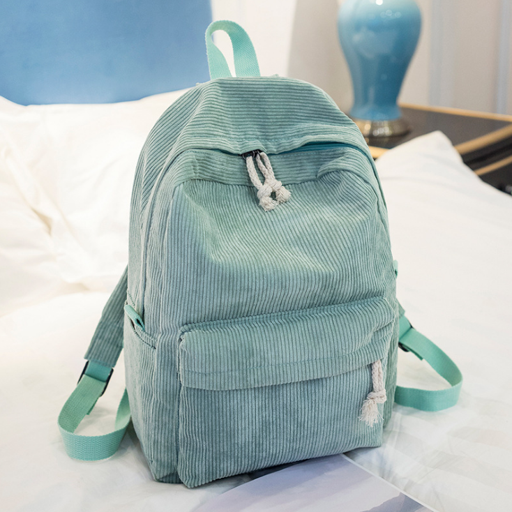 Corduroy Backpack Students Shoulder School Bags black