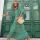 Summer Women's Vintage Printed Bohemian Dress Elegant Ladies Casual Loose V-Neck Short Sleeve Long Dresses Green S
